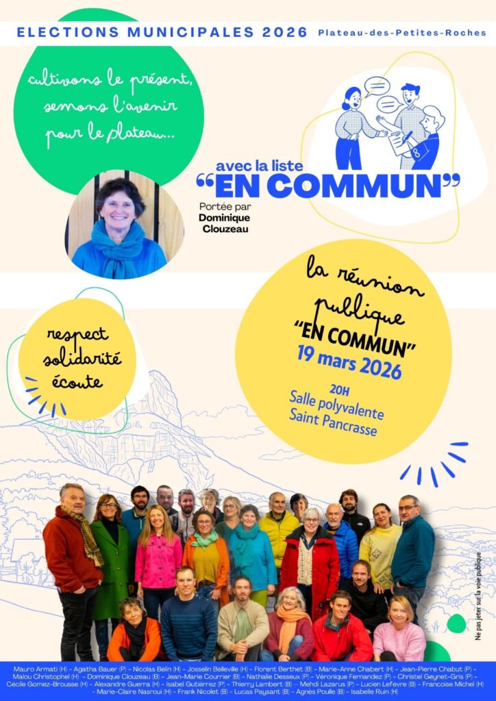 Vous nous avez sans doute rencontré.es lors de notre passage chez vous, lors de l’apéro « En Commun » du 4 mars ou à la réunion publique du 11.